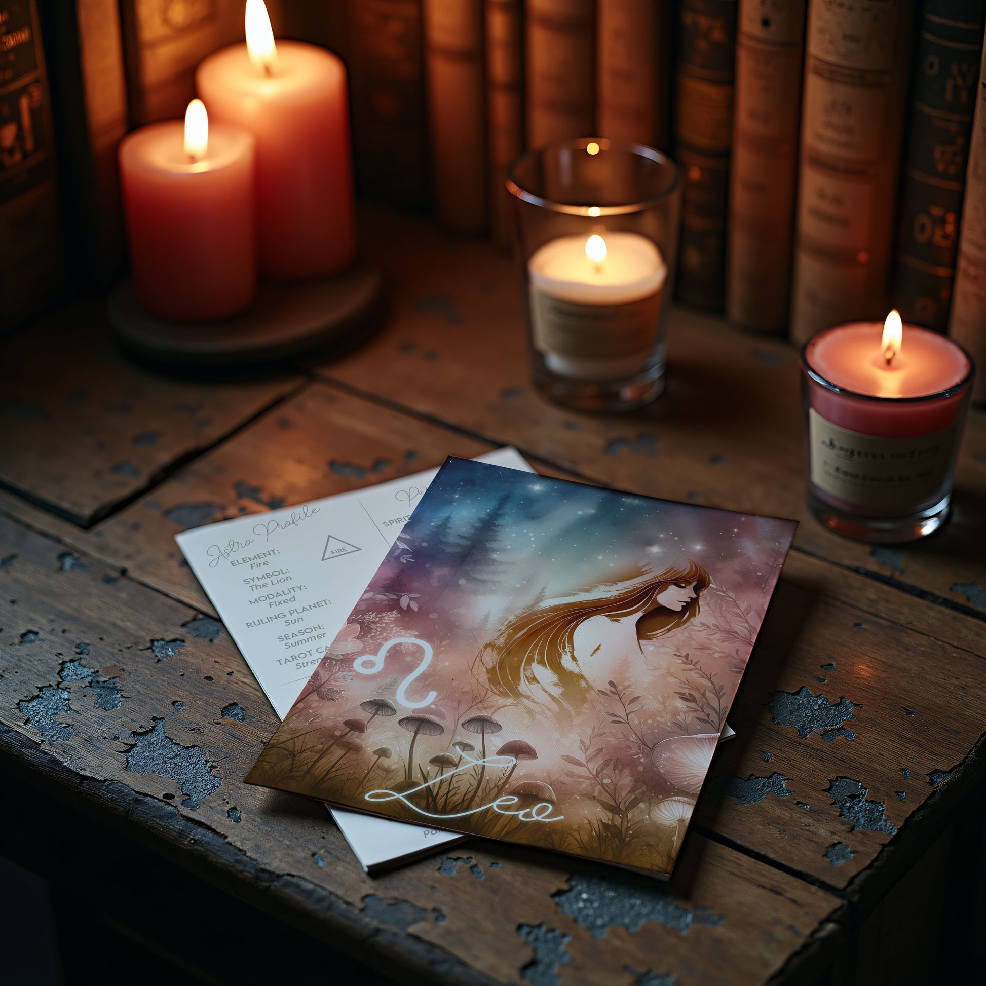 Leo – Zodiac Sign Card with Constellation & Crystals – A6 Astrology Art Print for Journaling or Gift – ZC426