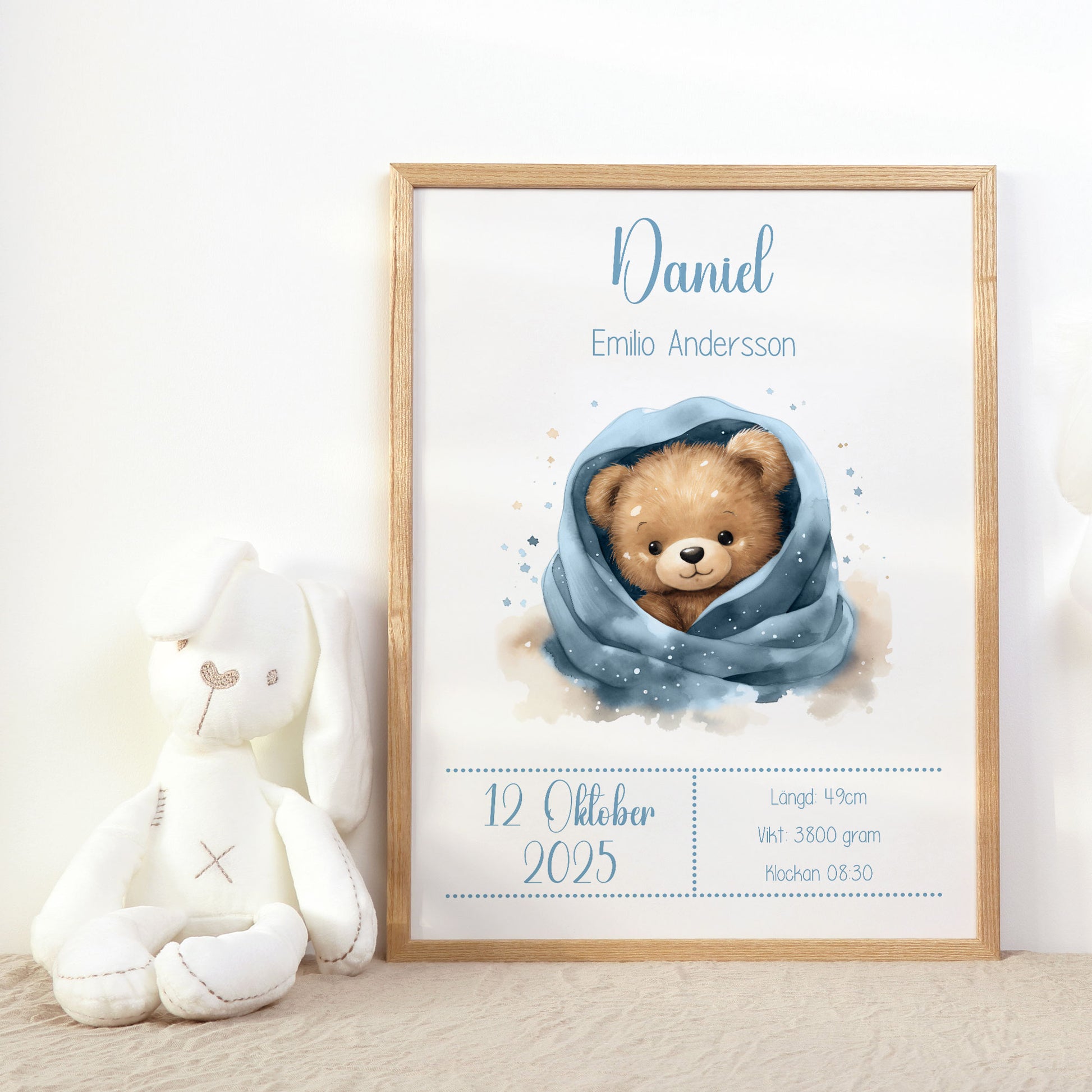 Personalized Birth Stats Print Cute Teddy Bear – Blue Nursery Wall Art & Baby Gift | Printed Poster in Multiple Sizes