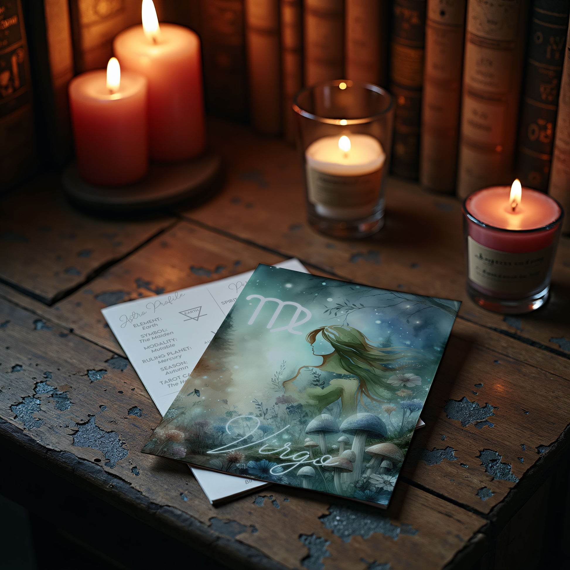 Virgo – Zodiac Sign Card with Constellation & Crystals – A6 Astrology Art Print for Journaling or Gift – ZC431
