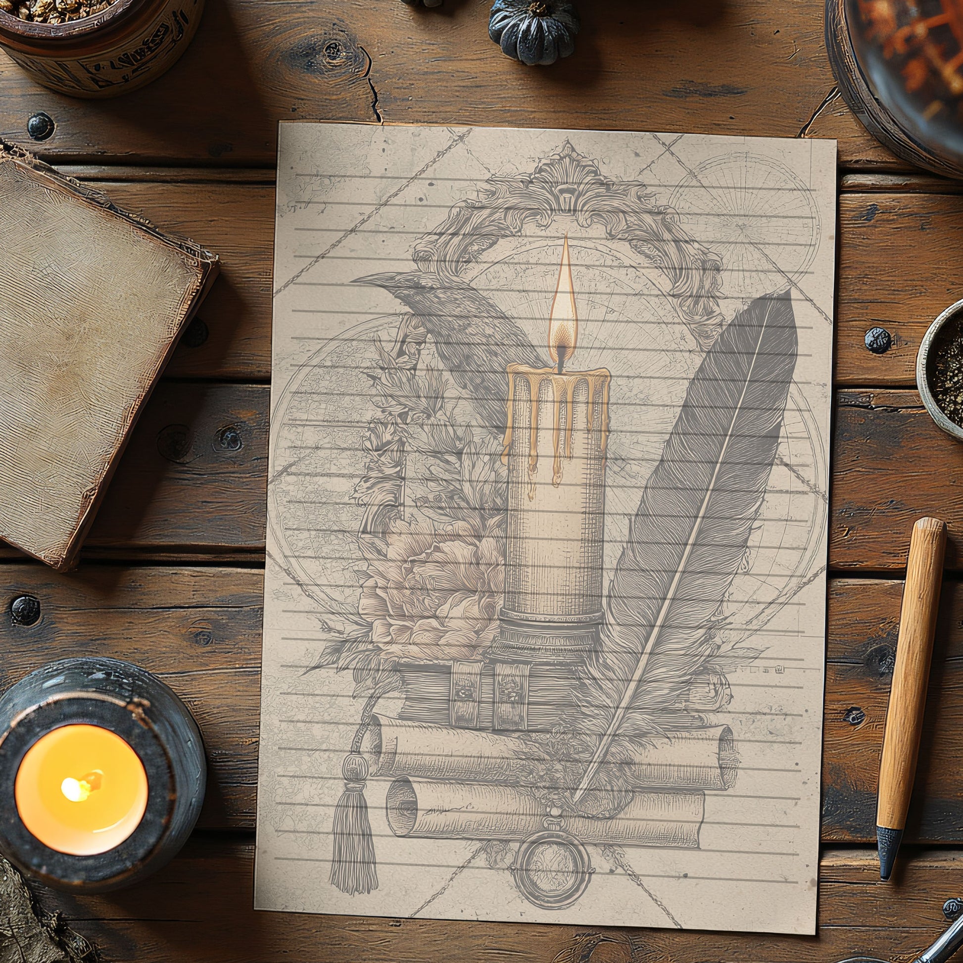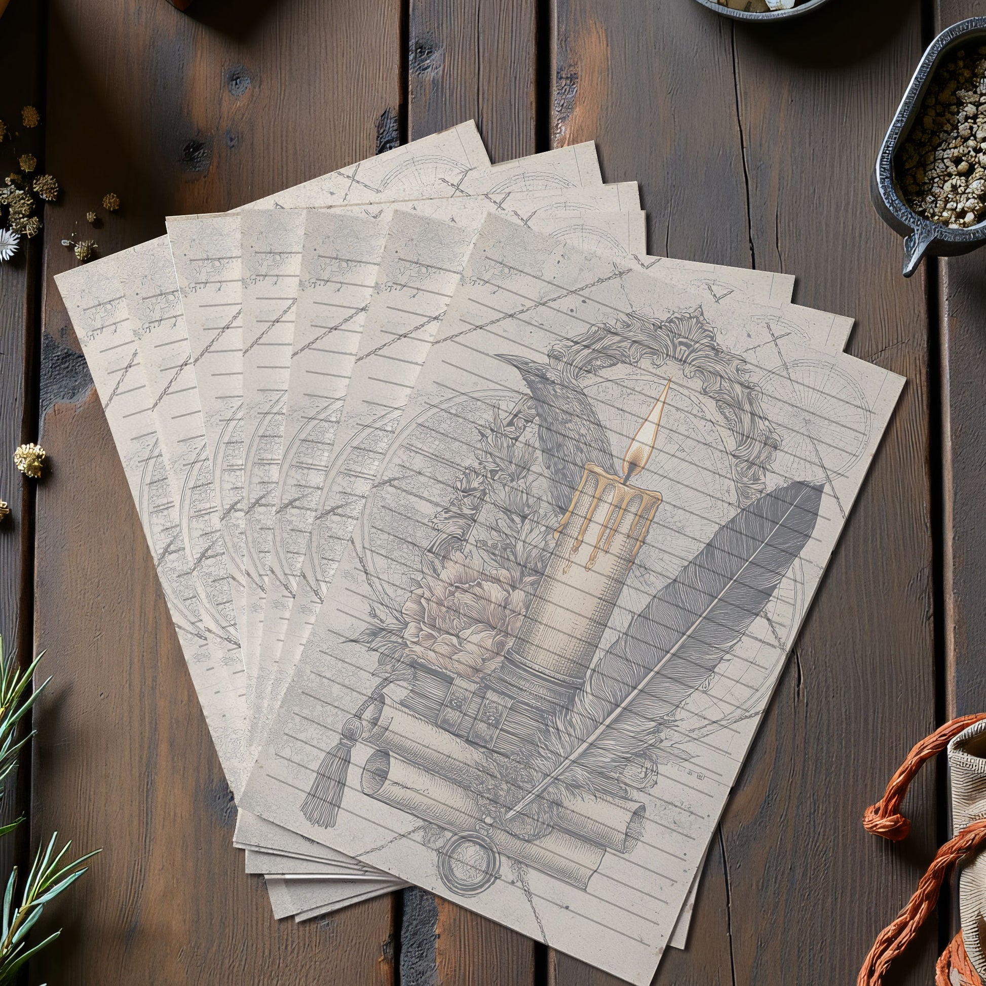10-pack Brevpapper - Vintage Ljus Dark Academia Grimoire / Book of Shadows Sidor - Tryckt A5 Papper - GP110