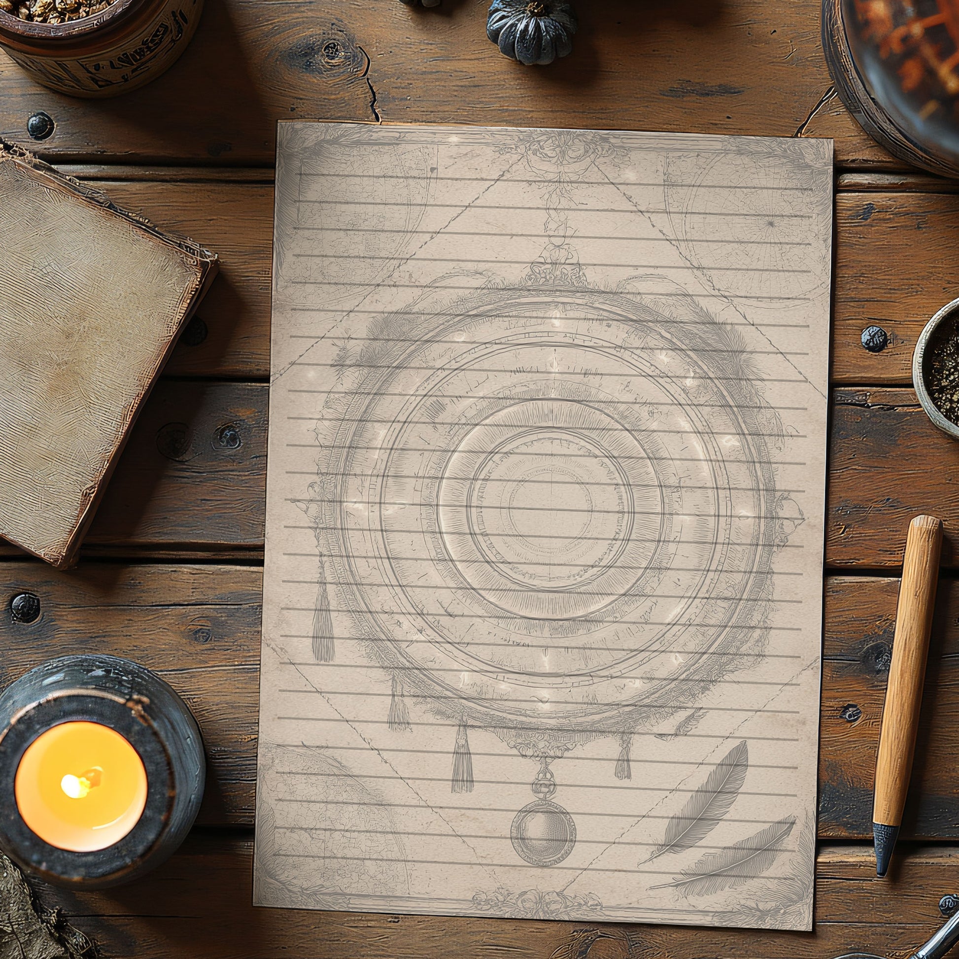 10-pack Brevpapper - Vintage Pendel Dark Academia Grimoire / Book of Shadows Sidor - Tryckt A5 Papper - GP109