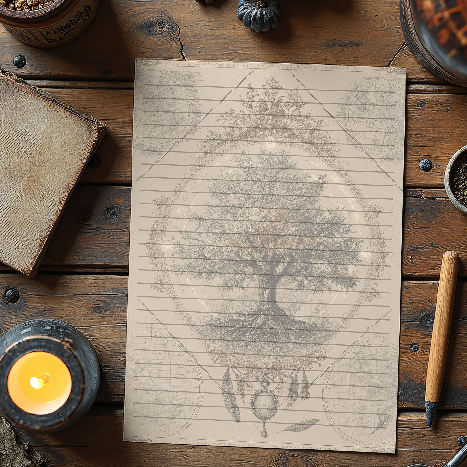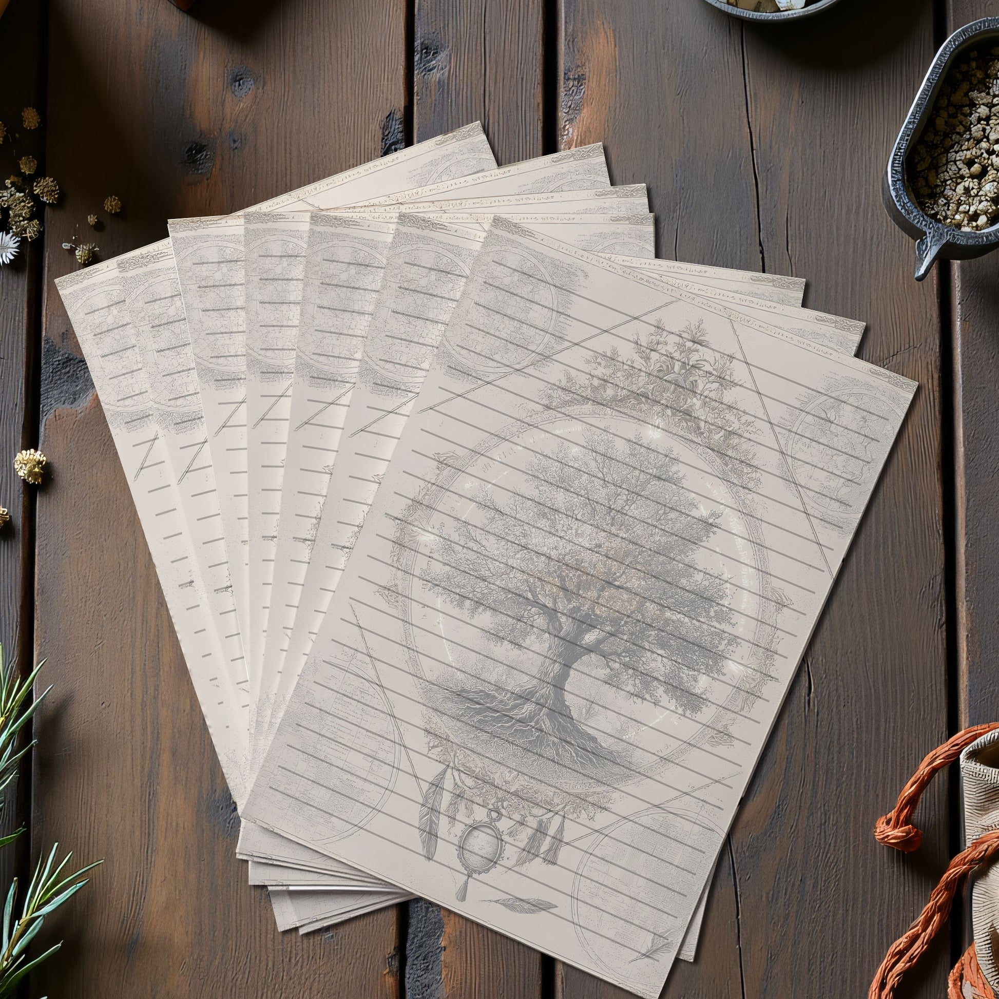 10-pack Brevpapper - Vintage Livets Träd Dark Academia Grimoire / Book of Shadows Sidor - Tryckt A5 Papper - GP117