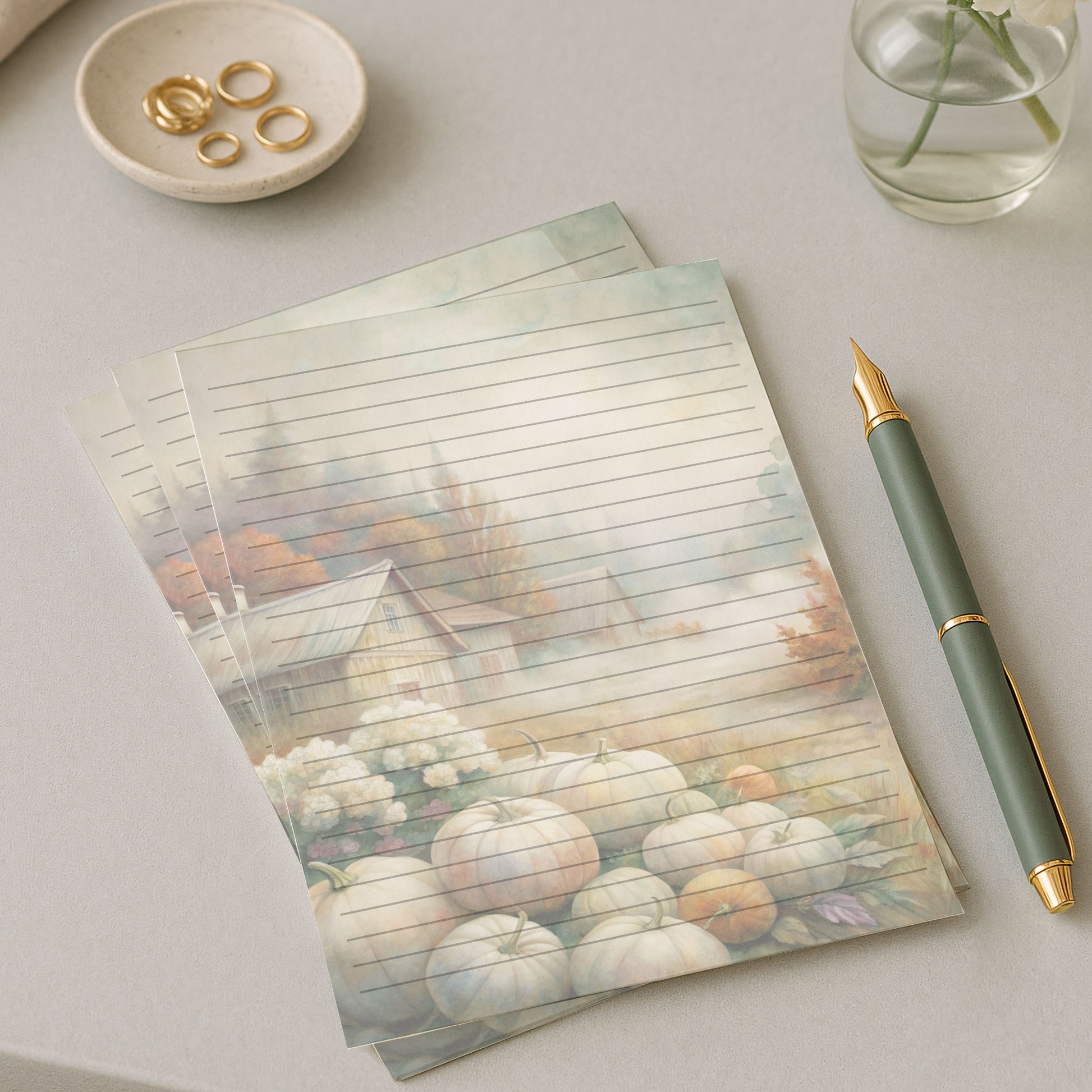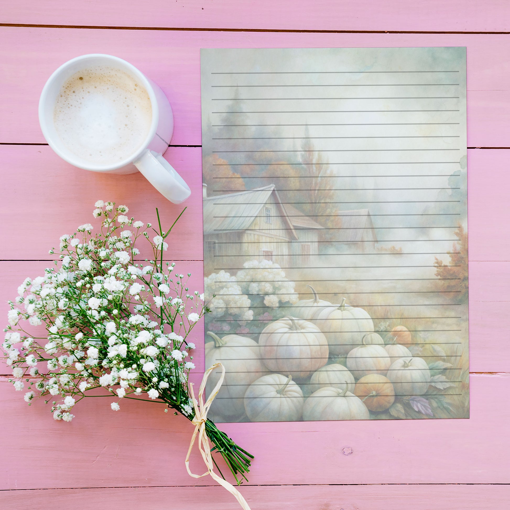 10-pack Brevpapper - Fält med vita pumpor - Tryckt A5 Papper - WP523