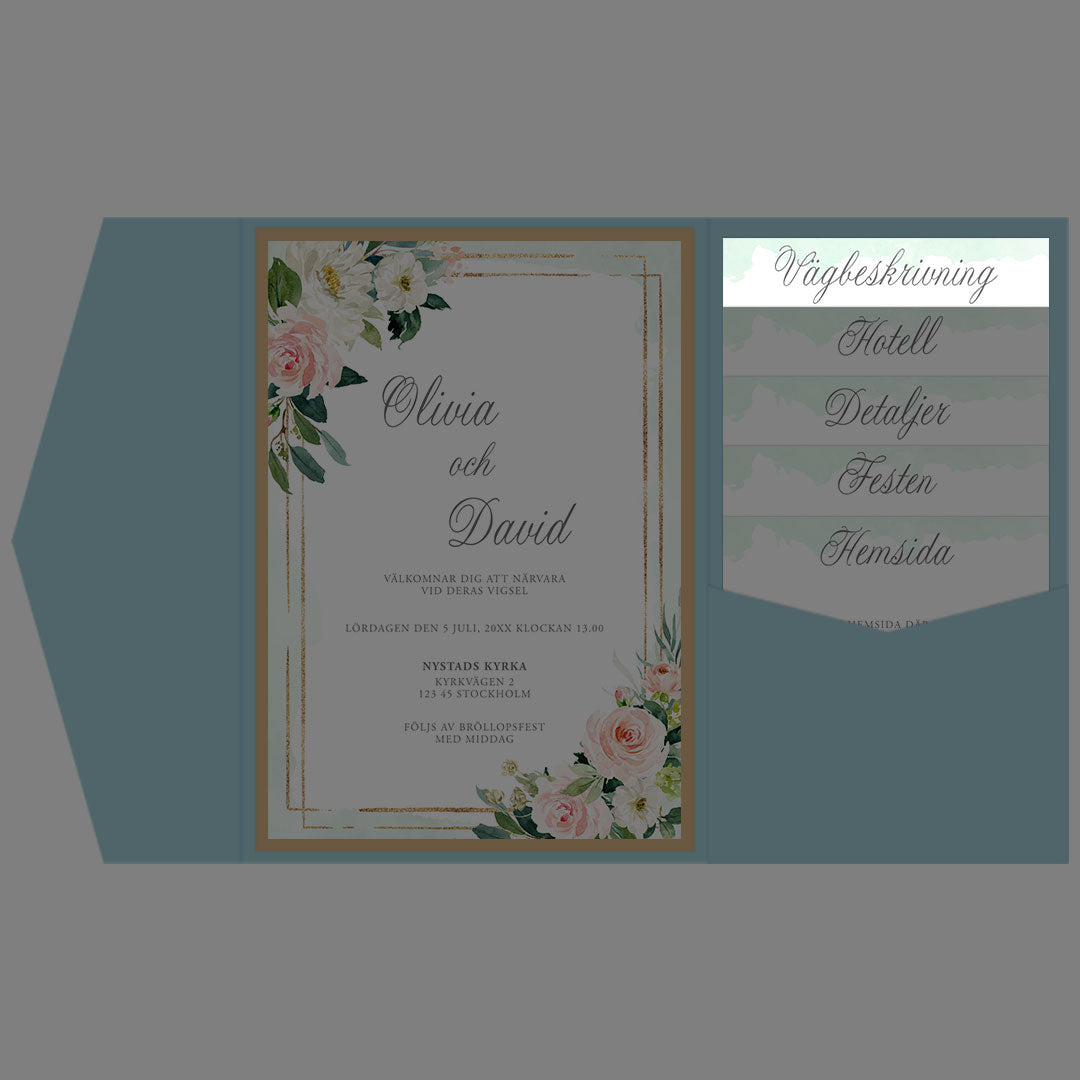 BR009-5 - Vägbeskrivning - Mint & Guld Somrigt - Tryckt bröllopskort