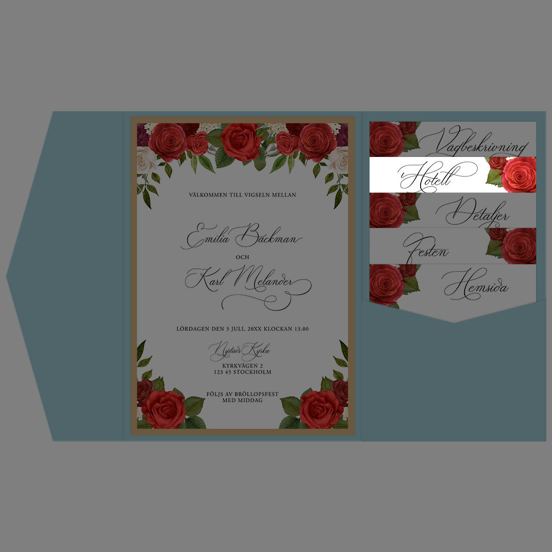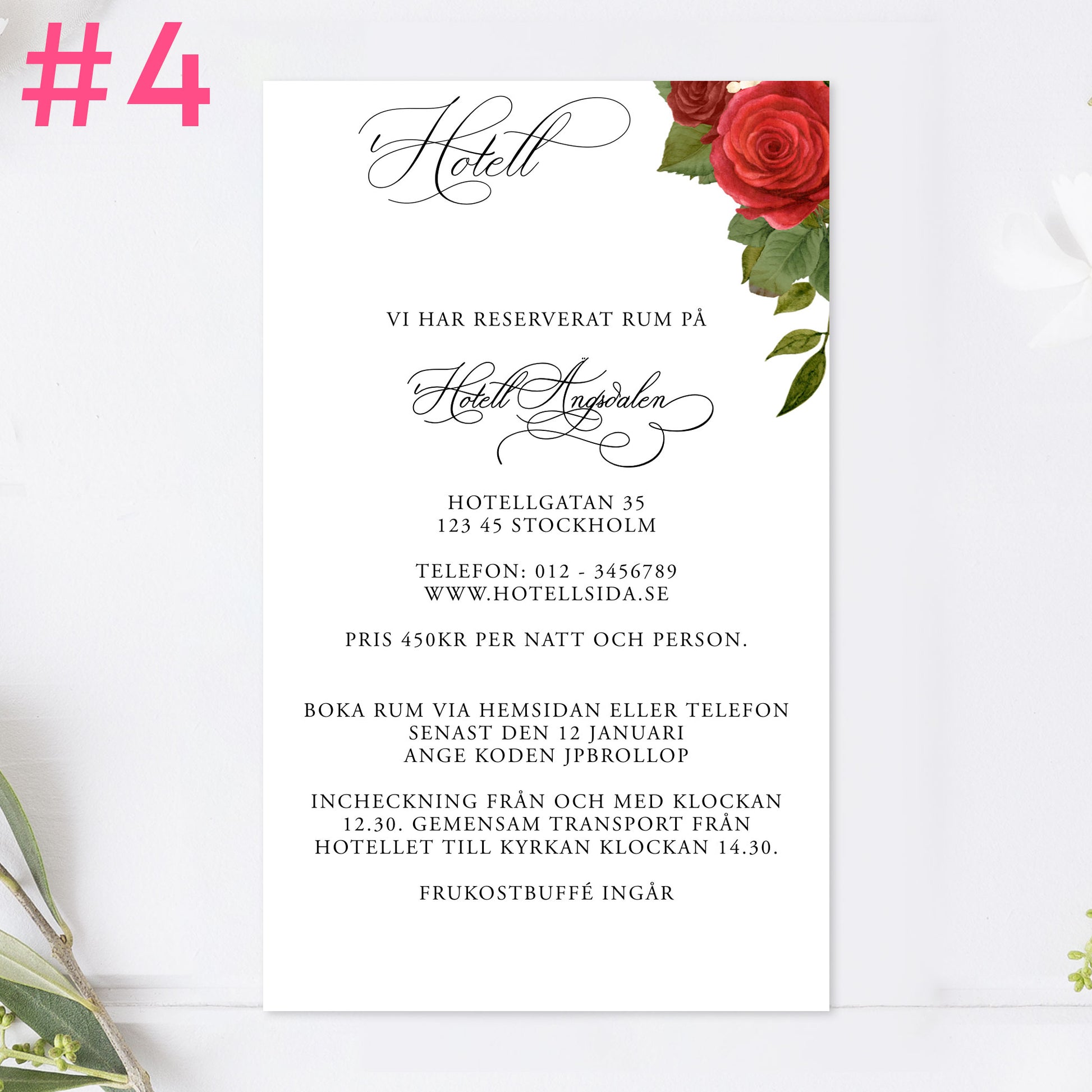 BR010-4 - Boendeinformation - Romantiskt Röda Rosor - Tryckt bröllopskort