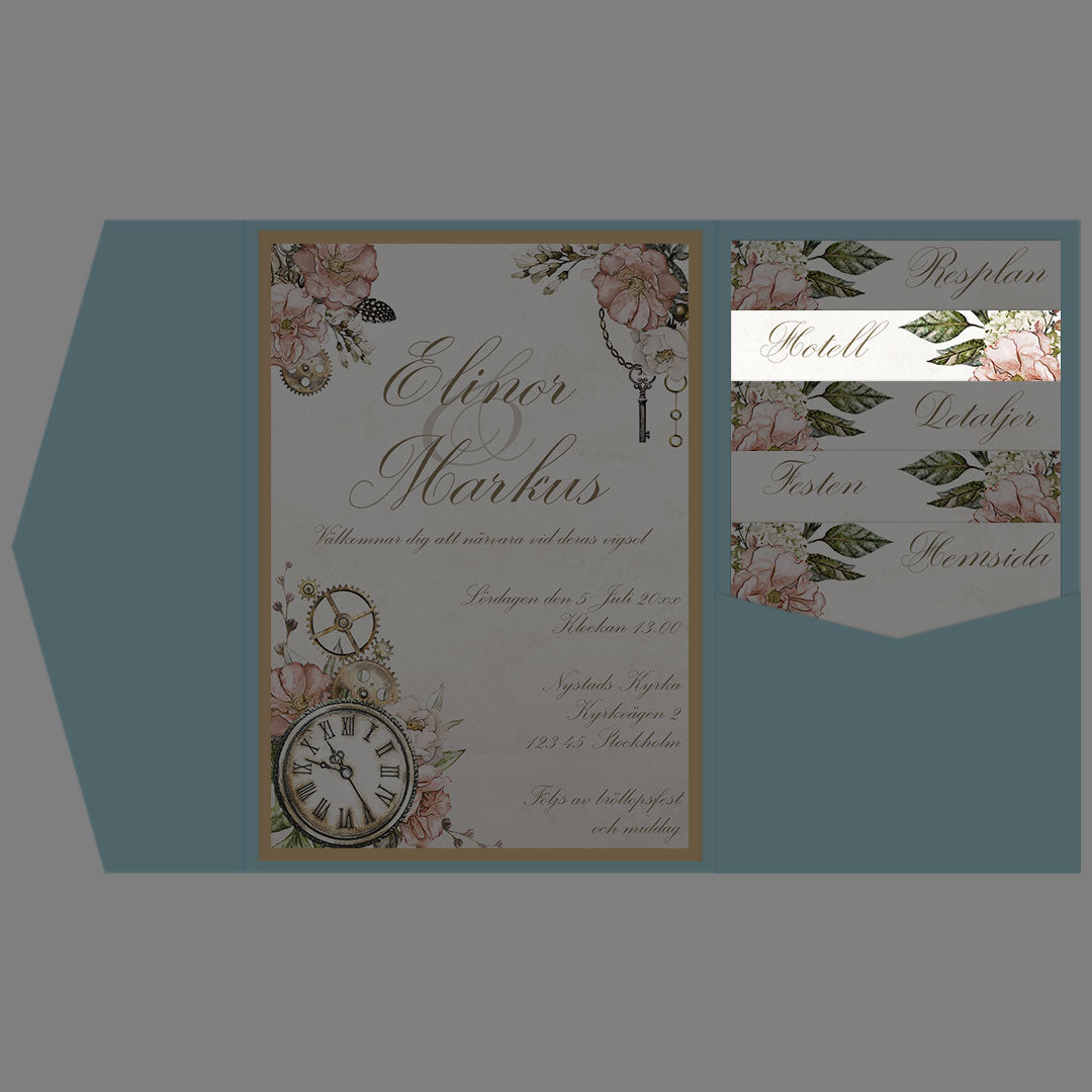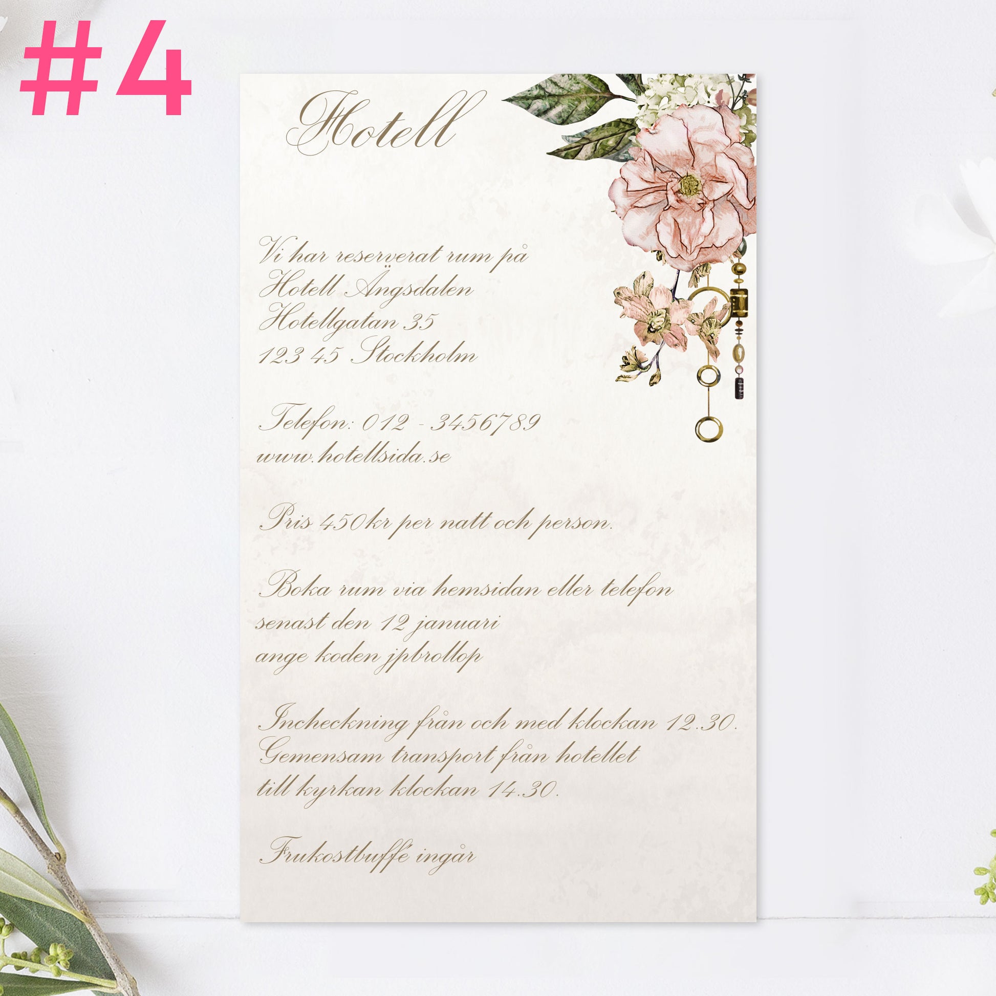 BR012-4 - Boendeinformation - Vintage Rosa Steampunk - Tryckt bröllopskort