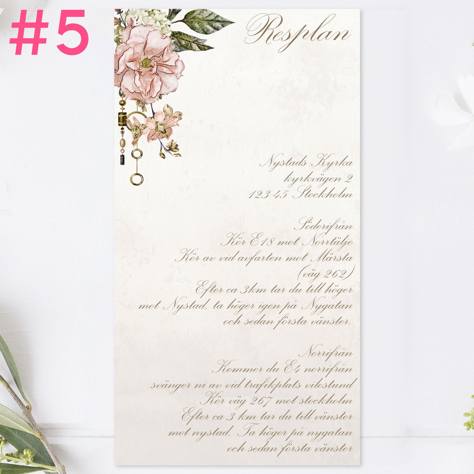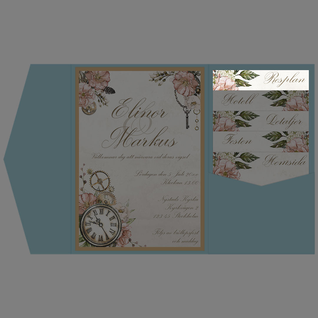 BR012-5 - Vägbeskrivning - Vintage Rosa Steampunk - Tryckt bröllopskort