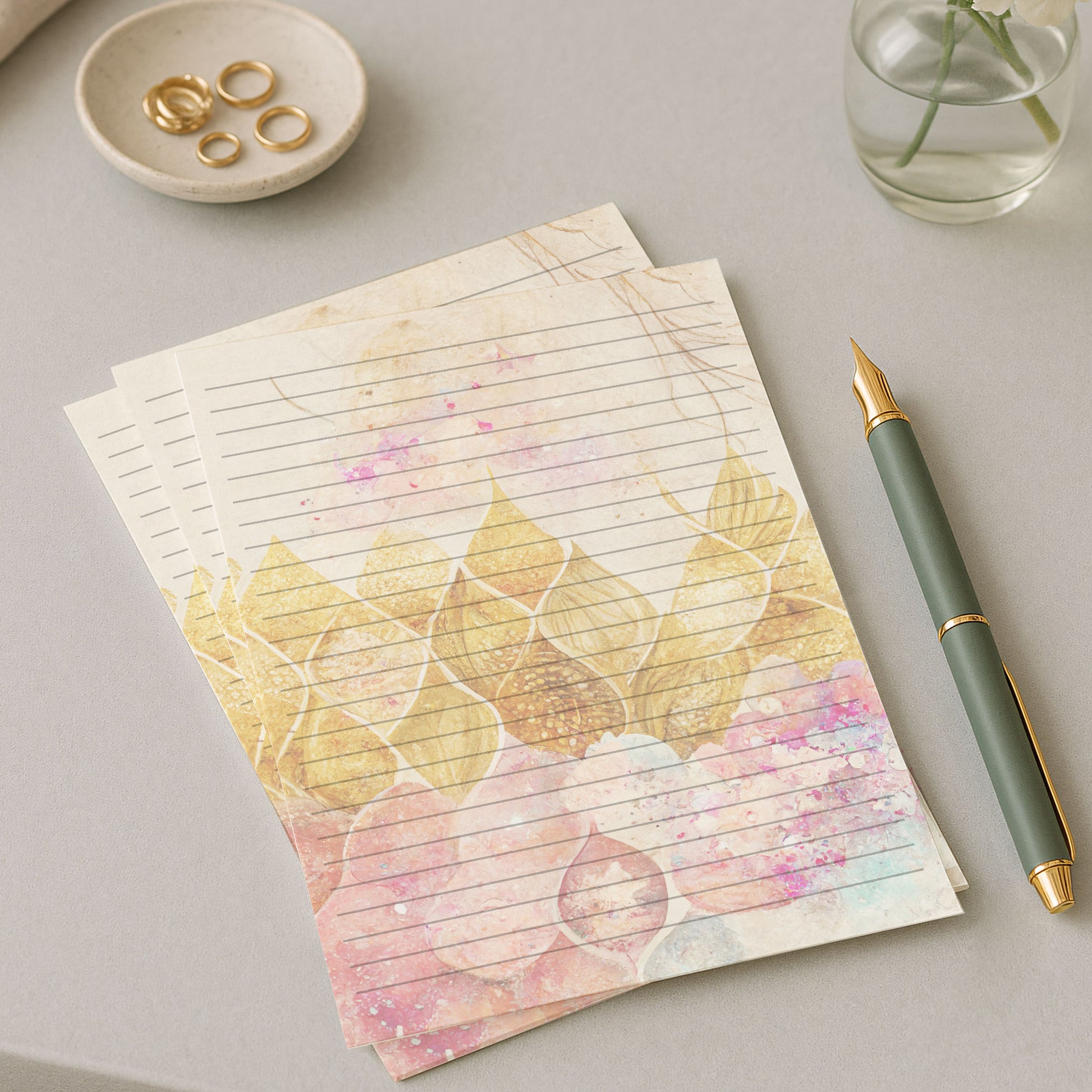 10-pack Brevpapper - Gyllene Sjöjungrufjäll - Tryckt A5 Papper - WP503